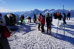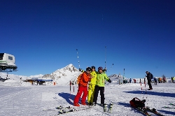 では、午後からになりましたが滑りに行きましょう!ここからはVialatteaのコースマップを見ながら読んでね(^^ この日は足慣らしだけなので、Cesana、Sansicarioエリアだけ滑れればいいかなぁと考えていたのですが... あまりの天気の良さに、ついついSestriereまで滑りに行っちゃいました〜♪ Sansicarioエリアの山頂へはJバー(34・35)で登らなくてはならないので、一番上のリフト(36)降り場から少し歩いてSestriereエリアの谷へ滑り込むのですが、そこは森林限界点の上、オープンスロープが広がりすごい絶景です\(^o^)/ ひとしきり写真を撮り合い、早速Sestriereへ滑り込みましょう! このエリアは上部は多少角度があるものの、中間駅を過ぎると延々と続く林間コースになります。その標高差は約600m、距離は軽く10Kmを超えているかな。それが終わると三本のリフト乗り場(18・22・23)が集まるエリアに出るのですが、この日はちょうど日曜日!混んでる。。そこで何とメンバーとはぐれた\(_ _;) どうも違うリフトに乗ってしまったみたい(T_T) まぁ後で携帯で連絡を取ってゴンドラの降り場下で会えたんだけどね(^_^ゞ ハプニングは色々あったけど、Cesanaへ戻るゴンドラ駅まで滑って初日のスキーは終わり!滑りすぎた〜(^_^ゞ |