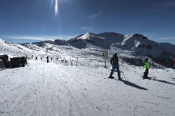 このMontgenevreは、真ん中にフランス・リヨンからイタリア・トリノに抜ける道路が通っていて、その両側にスキーエリアが広がる不思議なつくりで、道路をスキーで渡ろうとするとどこを滑っていいのかイマイチわからない\(_