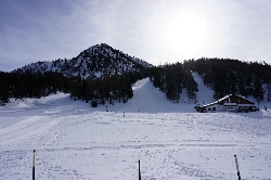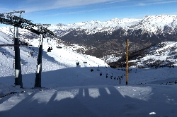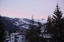 1月30日(火) 晴れ 朝起きると、ホテルの裏に見えるChaberton 3131mが朝焼けに光っている。さぁ滑りましょう\(^o^)/ この日の目標はSauze D'oulxエリア。地図で言うと一番左側のエリアで、まずはM.Fraiteve 2071mまで、35のJバー+短いスノーチューブで山頂に行きます。そして谷を滑ってCol Bassetto 2424mまで行ったら、後は欲望のままに滑り降りるだけ〜♪なんだけど、昔この谷は長く途中に支柱のないシングルリフトしかなく、板を持って渡ったんだよね。これもオリンピック効果なのか? Sauze D'oulxまでのコースは上部はオープンスロープで縦横無尽にコースが開けていてとっても気持ちがいい。 斜度はあまりないけど雪質もよくて滑りやすい。 でも中盤以下は林間コースでが延々と続く。コースはそれなりに広いので人で一杯になることはないけど、途中ボトルネックになるところもあるので注意は必用かな。 ヨーロッパのコースは基本的に山の地形をそのまま利用するため、日本では考えられないコースも出てきます。でもそれを含めて自然と対話するスキーなんですよね。 ちなみにM.Moncrons 2507mエリアの三本のリフトは全てクローズでしたo(;△;)o エーン |
