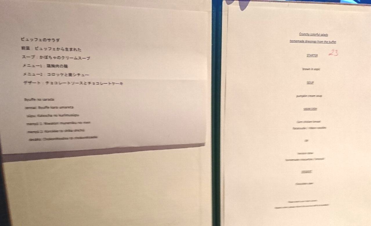![]() ![]() ![]() ザールバッハ最後の晩餐は軽めのメニューだった ![]() ![]() ![]() ここでも海無し国のだけどお魚のメニューがあった。 この日のメニューはこちら |