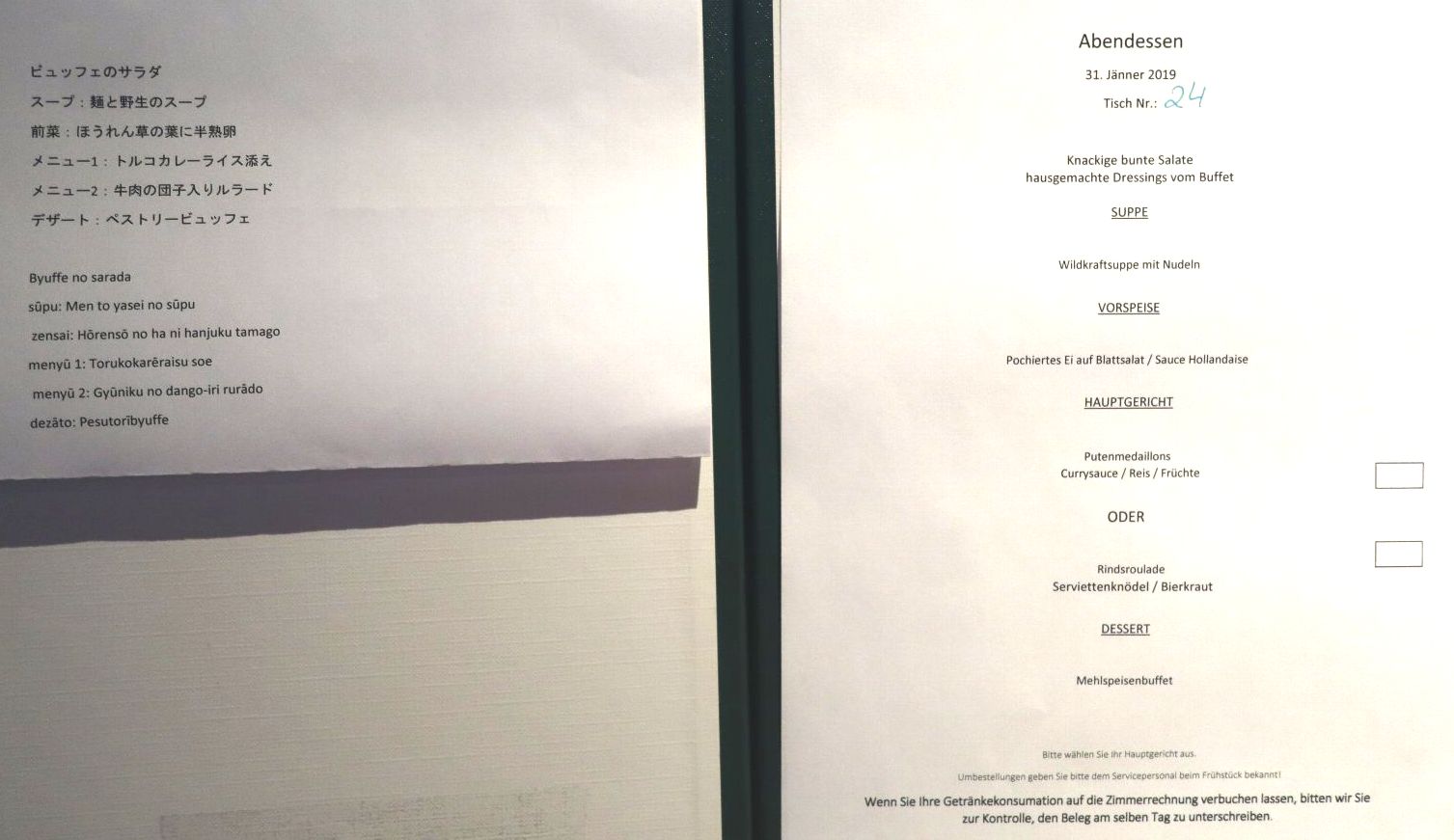 ![]() 晴れ間から望む景色に息を呑む ![]() ![]() ![]() ![]() 流石オーストリア、獣耳が充実している♪ ![]() ![]() ![]() 意外とメニューに野菜や魚が多いのが救われる この日のメニューはこちら |