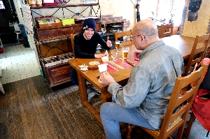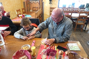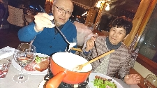 | 1月24日(金) 晴れ 自由になる最後の日ですが、お土産も買ってないし近隣の街も旅してみたいし、この日は観光します! まずは自分の街の赤いスキーバスで一番下まで行き、30mほど歩いてSt.Jean D'arvesの青いスキーバスに乗り換える。その際にチーズ工房を少し覗いて(見るだけね(^_^ゞ)からスキー場方面に行くのですが...一番下のバス停ですごく気になる黄色い灯りが。すごく気になったけどとりあえず街のほうへ(^^ インフォメーションで街の地図を貰って街を散策してみたら、坂道を上手く利用して階段状にウッドデッキを繋げた商店街になってた\(^o^)/ 街が新しいんだね。計画的に作られた街は歩きやすくお土産屋さんも充実している。でスポーツショップなどもめぐりながら見て歩いたけど、あんまり新しく作った街って好きぢゃないんだよね(^_^ゞ なので再びスキーバスに乗って、さっきの気になる灯りへ向かいます! そこはLes Chambonsという小さな村で、そこにはいかにも地元民のための、地元民しか来ない Bar Restaurant de L'Equipe がありました。 入ってみると予想通り?フランス語しか通じずメニューもフランス語のみ!そここで助けてくれたのが常連の二人でした。彼らにWi-Fiをせっていしてもらい、親父さんにミルクアレルギーを伝えてメニューを決め、御礼に折り紙を教えて、すっごく楽しい時間を過ごしました♪ |