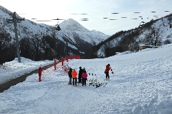 | 1月22日(水) 晴れ 今日も晴れた。 なので二番目に遠い、エリアの一番東側に位置する Les Bottières 1300mに行ってみよう! このエリアに行くにはいつものL'OUILLONから地図の中心で一番大きい?La Toussire 1750mに滑り込んでから行くのですが...う〜ん、リフト設置の構造とか複雑で何本か余計に滑る羽目になった。。って要は迷子なんですが\(_ _;) そして最後にGrand Truk 2209mに上らないと行けないのに、途中のコースには標識も何も無く、本能赴くままに滑り降りていくともう一回リフトに乗るはめになる...なんてのもあって苦労しましたよ(^_^ゞ でも上部のほうは本当に雪が良くて楽しい♪それに滑っている人も少ないしねd(^_・) 滑り降りてみるとそこにはお日様に負かって一軒のレストランがあったので、外でお日様に当たりながらビールをごくり。美味しかった\(^o^)/ レストランを出たのは1時過ぎ。ついでだからそのまま谷を渡って、Le Corbierエリア1550mに行ってみた。 このエリアの下部はコースが面白い!思いっきり飛ばしたいけどいかんせん、初級者や子供も含めて人が多いんだよね。だから自重して...(^_^ゞ それで行ってみたらエリアの一番下がウッドデッキのショッピングモールになっていた。お店はスポーツ屋(レンタルも)さん、レストラン、ファーストフード、お土産屋さん、チョコレート屋さんと豊富で獣耳を探してうろついちゃったよ(^^ ただ飲食店以外は昼から14:30までお休みだから気をつけてねd(^_・) 最後はホテルのある街の隣り、地図の一番左側のSt.Jean D'arvesエリア 1550mまで滑ってみる。 泊まっている街へは夕方からバスがあるのを確認してあったので、最後はスキーバスで帰る計画ね。 で行って見ると途中のコースが結構きつい(^^;;; 斜度自体は差ほどではなくても、一番下まで滑るとランディングがなく、すぐ曲がらなくてはならないために抑えて滑らないといけなくて、これは結構きつい\(_ _;) でも最後の谷に入ると、ご褒美のように長〜いコースが続き街に滑り込む。うん、楽しい♪ St.Jean D'arvesのスキーバスは我が街(泊まった街ね)とは違って青い水玉のバスだった。 それでバス停を見つけて来たバスの運ちゃんに聞いたら隣町までは行かないけど乗れと言う。疑問に思ってたら街の境で下ろされ、何かこの先に歩いて行けと言っている。素直に30mほど歩いて行くと、我が街の赤水玉スキーバスが待ていた\(^o^)/これは使える。次の日からの行動範囲が思いっきり広がりました! |