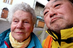 リハビリをかねて、無料のバスで隣りのSAMOENSに行ってみると、水曜日の市?をやっていた(^^v 大勢の地元の方と観光客でごったがいしてたよ。 フランスは1月に商品入れ替えをすると法律で決められているので、半額セール!なんていうのがあちこちで見られた。円安でなければ安いんだろうなぁと考えてしまうのは、何だか寂しいのぢゃ\(_ _;) また街には小さな教会があって、ちょっと写真を撮っていたらおばあちゃんが声をかけてきた(^^ 色々教会のレリーフなんかを説明してくれ、そしてご家族が日本に行った事があると言っていたよ。 街の駐車場にはキャラバンが来ていて、色色なものを売っている。一通り見てから買ったのが手作りチョコレート。1個が直径50cm、高さが20cmぐらいある巨大な円柱形ので、色々な種類があり、それを巨大な包丁のようなもので切って計り売りをする。よし、会社のお土産にこれを買って帰ろう。それをサイコロ状に切って出しておけば、ピラニア状態の若い奴らには十分だろう \(^o^)/ 13年ぶりのグランマッシフは近年のスキーブームに乗ってあちこち近代化していて昔の面影はない。でも街はむかしのまんまでうれしかったよ。観光ばかりになってしまいましたが、街のインフォメーションのお姉さんが日本語できるし、宿のお上さんも日本語がしゃべれる。何だかんだ言ってお手軽な旅になりました! |
