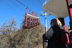 二つのエリアをつなぐ巨大ゴンドラの前にて