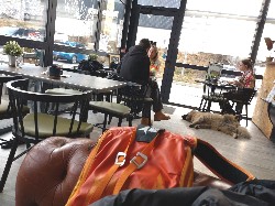 Nordique de Pont Baudin クロスカントリースキー場にも行けたよ。それも全部無料。これでこの山肌に実に多くの人が住んでいるのがわかる。 さて、腰のリハビリを兼ねて、このバスを使ってプチ旅をしよう。残念ながら今回はスキーはお預け\(_ _;) まずはLandryの駅に行って見よう。Landryには15人ぐらういの小さなバスが運んでくれる。しかし、運転は荒い〜〜〜〜〜(m--)m そのLandryの街は駅からは少し離れていて、駅周辺はただ広く何もないし、駅にも誰もいない。 ただそこに唯一、このAlpine rootsというカフェだけがあった。HPを見ると季節ごとのケーキや料理もあって、子連れの奥様方に人気のようだ。 とりあえず今回はロングコーヒーを頼んでみた。一杯2ユーロと格安\(^o^)/通常の椅子の席は全てお客さんが座っていたので、許可をもらってソファー席を一人で独占〜♪ゆったりとコーヒータイムだ。 ふと横を見ると、犬が大股開きで寝ている。よっぽど安心しきっているんだね。 アルコール以外を頼んだのって何年ぶりだろう?、ひとしきり至福の時間を楽しんだ後、バスの時間に合わせてバス停に行くと、電車で来たであろう若者の集団も乗せて山に帰っていく。バスには軽快な音楽が流れていた。 ちなみに最後は自分ひとりだったこともあって、好きな場所まで運んでくれたよ(^^;;; |