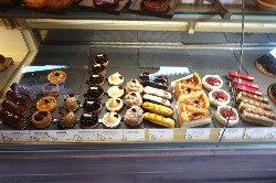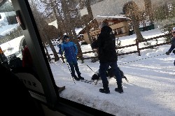 | 他の場所にも行って見よう。 まずはバス停で言うと13番のSite Nordique de Pont Baudin クロスカントリースキー場。バスに乗ると、途中からクロカンの板を持った方々がどんどん乗ってきて、へ、ここはどこだ?って錯覚しそうになる。 クロカン好きなかた、ぜひ世界でクロスカントリースキーをしてみませんかd(^_・) 次は28番バス停ARC1800に行って見た。ここは一般の車は通れない、ゲートで規制されていたルートを通りって行くのだが、何かすごく近代的?! 地下のバスターミナルにバスが止まり、そこからエレベーターで地上に出る。地上の一番上がARC1800の街だ。 街はカントリー風に統一され(街にカーブがかかっている)、レストラン、バー、おみやげ物屋、不動産屋、スーパーの他に肉屋さんまであったよ。本当に生活することを前提に作られているんだと感じる。 スキー場だけ、自分の店だけしか考えない日本とは大違い、街全部、スキー場に関わる全てが一緒になって生活している。そう感じた。 ちなみにゲレンデは街に隣接していて、簡単にアクセスできるようになっていた。楽チンだよ d(^_・) 滞在した村にもあったけど、各街や村にはパン屋兼お菓子屋さんがあって、おいしそうなケーキが沢山売っていたよ。これもお楽しみの一つだね(^^ |