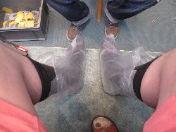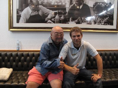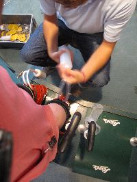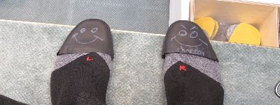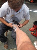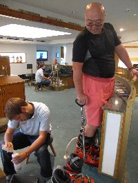 | 4時に再び工房に戻ると、既にブーツが組みあがっていました。 ただ以前作ったときにアッパーシェルがワンピースだったのが、今回は2ピースになっている。よほどくまさんのフクロハギが太かったんだね(T_T)まぁ硬さには特に問題が無いと言うので、それはそれで良しとしよう! それではと早速フォーミング(インナーブーツに発砲ポリウレタンを注入して、完全に足形を作ってしまうこと)を始めます。 しかしその前に、また『KUMA、何飲む?』だって(^_^ゞ今度は宿も決まったし、車の運転も無いので思い切ってビールもらっちゃった〜♪ さてお仕事お仕事_¢(0-0ヘ) ただ、このパットは3種類あって、後から見たら暑さは同じだから、どうも硬さが違うようだ。 この時「よかったらインソールも作るよ?」と言ったのですが、『うちにも売っているけど、お前の足にはいらない!』だって。 実はシトローツのフォーミングは、オーストリアで作ると足裏にまでウレタンが注入されます。しかし日本で作るものは入らないと、元日本でシトローツ区作っていた方が言っていました。 そんなわけで綺麗にパットを貼ったら、それが剥がれないように静かに靴下を履かせてもらい、 次につま先が高くなっている専用の台に立つと発砲ウレタンを作るA液とB液を合わせて、それをインナーブーツから伸びたホースに差込と...いきなり足のそこらじゅうが一気に押され始める。 「・・・ぁ(汗)」最後の断末魔のような悲鳴とともにやっと片足のフォーミングが終わりました。 一通りフォーミングが終わると、さっきの靴下やパットを全て取って、もう一度ブーツを履きます。 でも問題はありませんでした。一言言ったら奥に持込んで、ちょこちょこっと直して来ました。きっと忘れたんだぞ。最初からやれよ〜(^^メ) 何はともあれ、この日できることは終わりです。後は翌日もう一度履いてみてから、微調整があれば...と言うことでお会計です。 今回作ったのは一番上のグレードで759€。(この時1€132円ぐらい) とりあえず、日本円で9万円弱のお買い物でした。他のメーカーの靴と比べても、結構安い買い物だと思いますよ(^^v |
