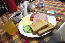 ![]() ![]() 朝食は通いのおばさんが用意してくれたけど、暖かいのはトーストしかない |